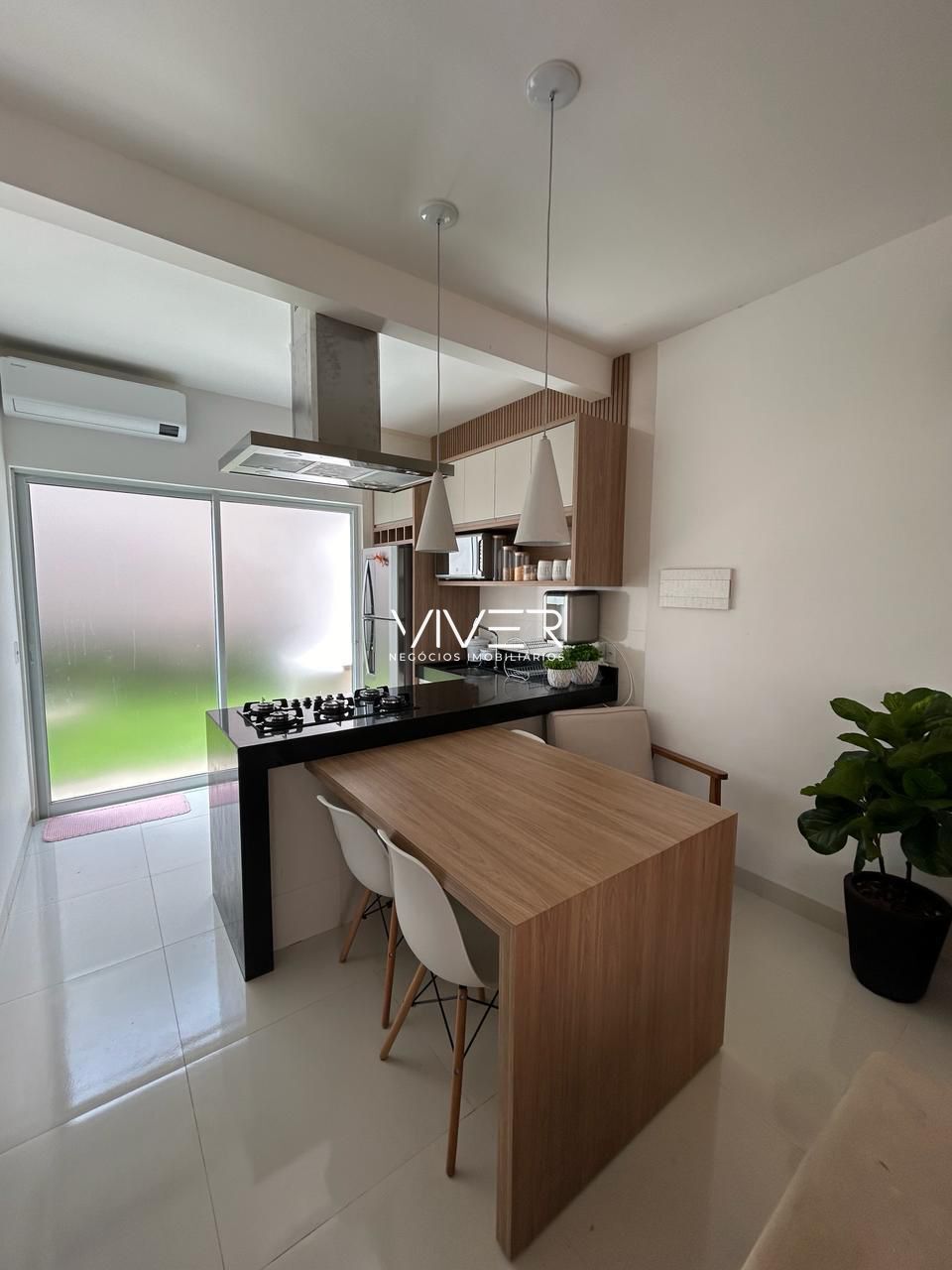 No térreo possui: cozinha, sala, lavabo, lavanderia e área privativa